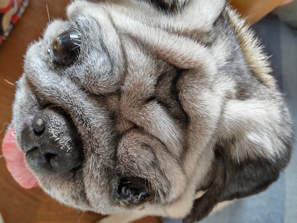 排泄のサイン(床の匂いを嗅ぐ、ソワソワする、クルクル回る、腰を落とそうとするなど)をよく見てください。(パグなのでよく回ります。)